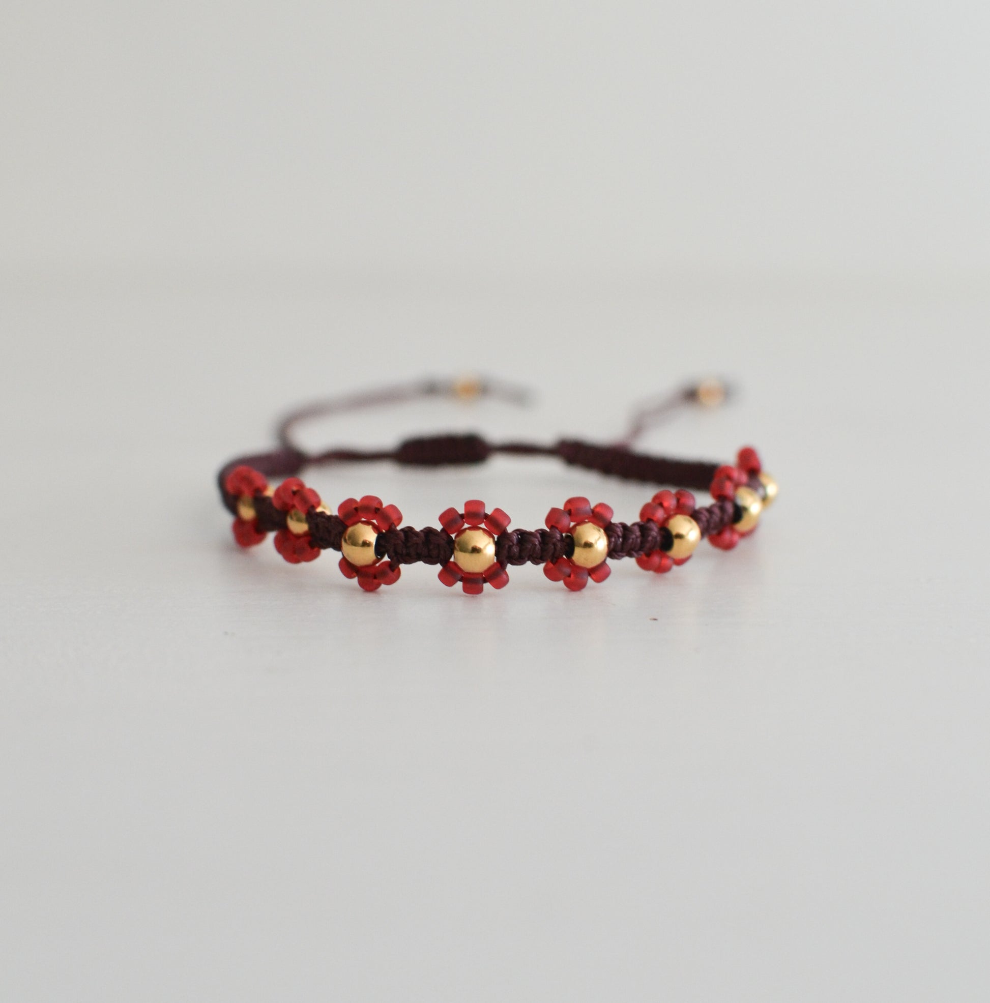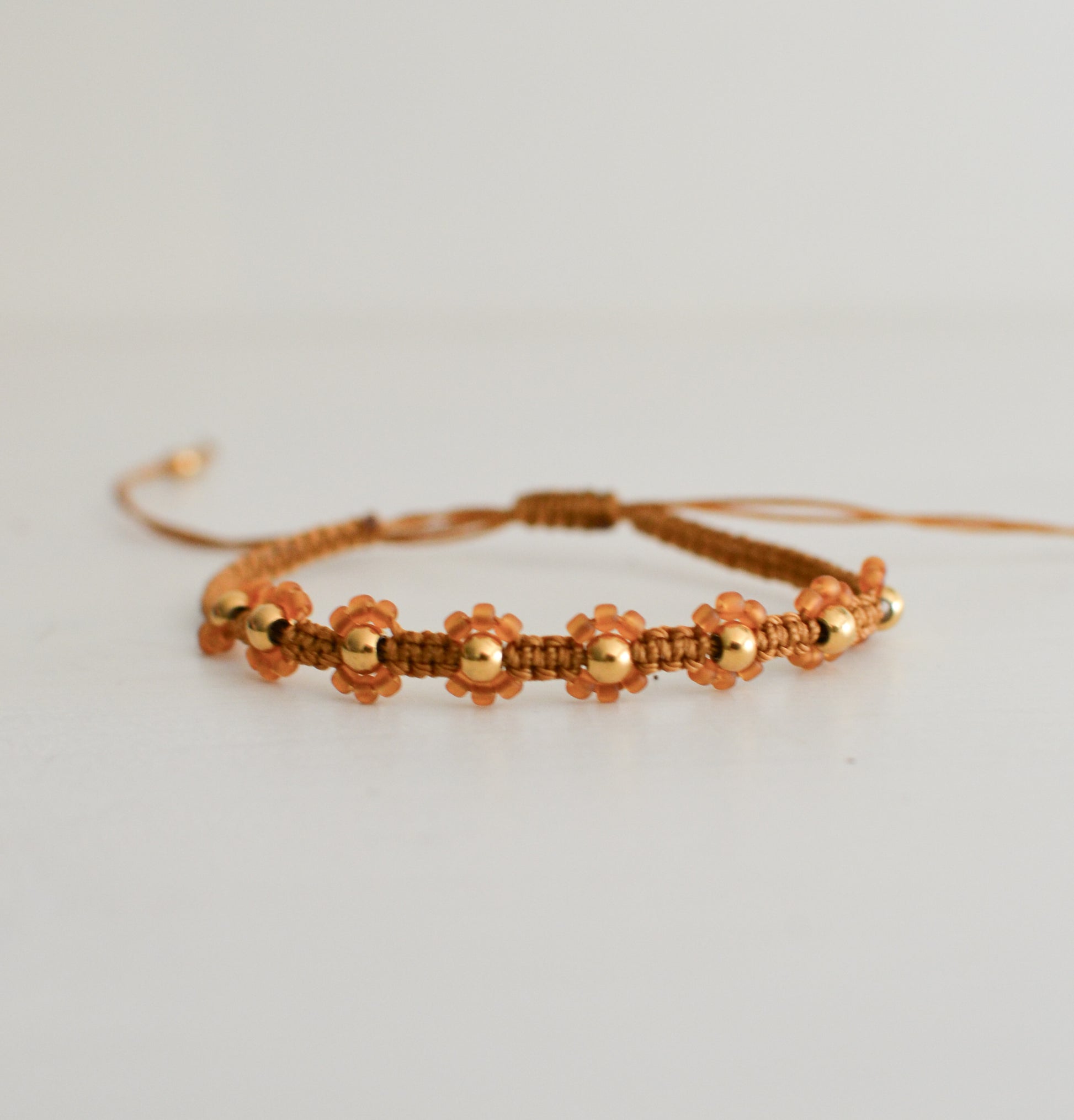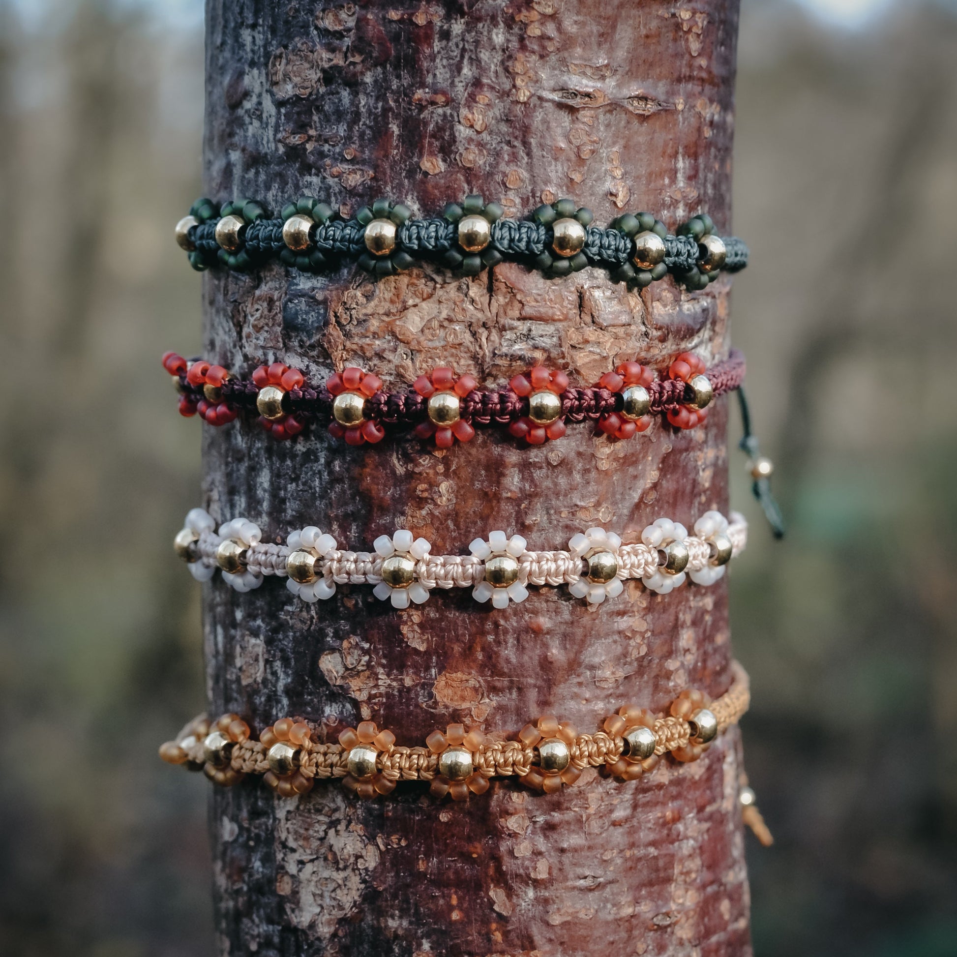 - Materiaal: Macramé draad, RVS kralen en glaskralen.