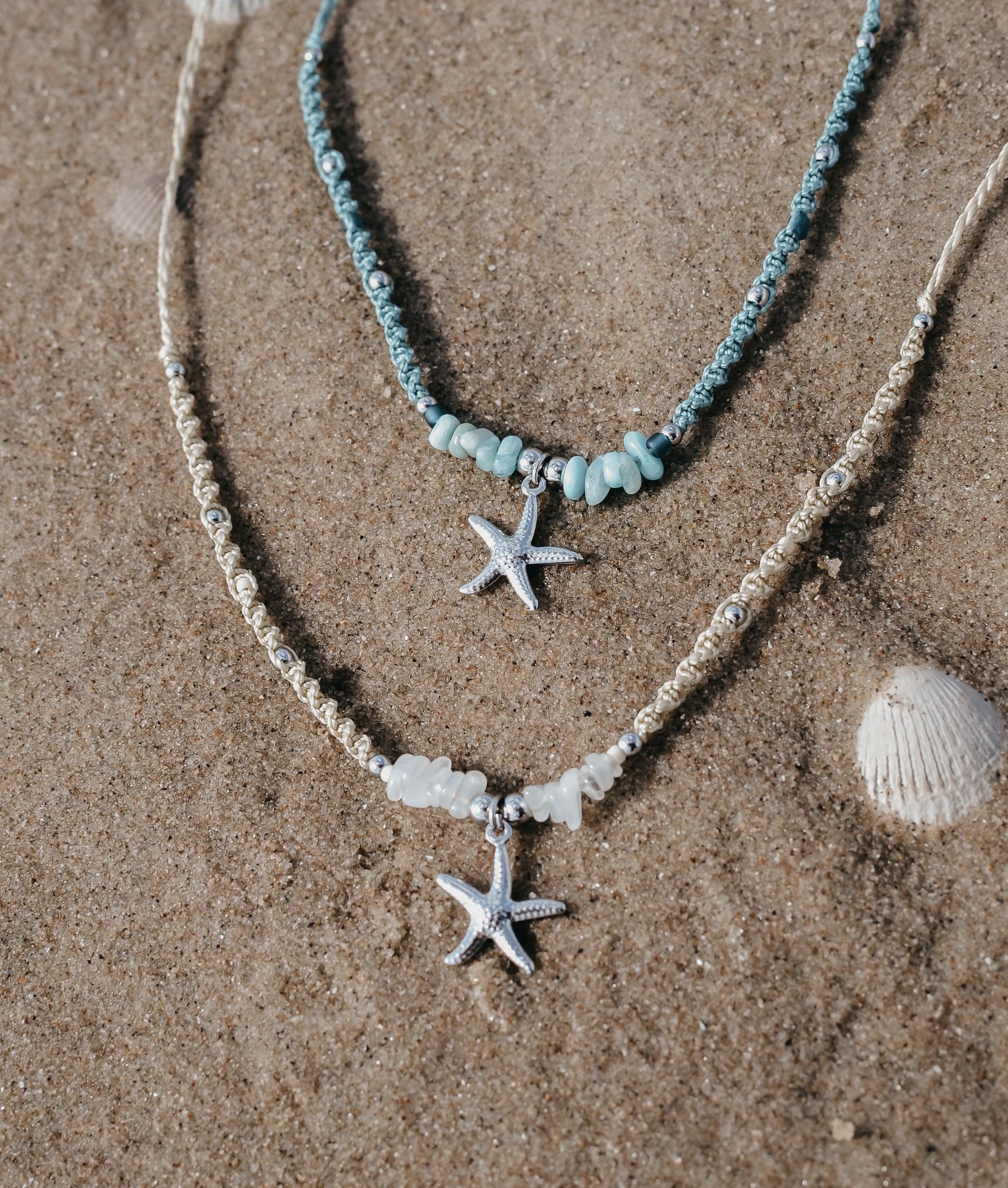 - Kleur: Beige of Turquoise(touw), Beige/zilver of Turquoise/zilver (kralen), Wit/transparant of Turquoise (natuursteen)