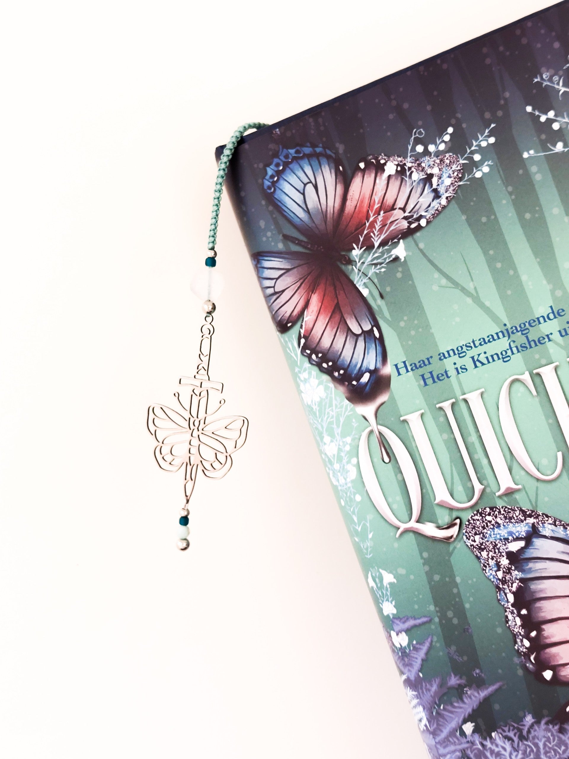 Kleur: Zilverkleurig (RVS), Turquoise kleur (Touw), Wit/Turquoise (natuursteen), diverse kleuren glaskralen.